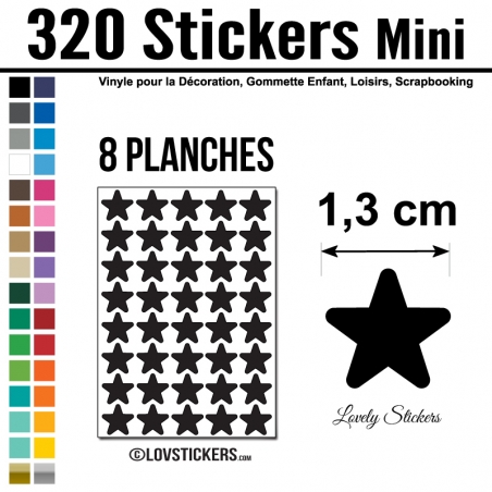 320 Etoiles 1,3cm - Gommette Deco Repositionnable en Vinyle