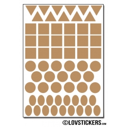 8 planches de 63 gommettes Formes de 1 cm, pour un total de 504 Autocollants.