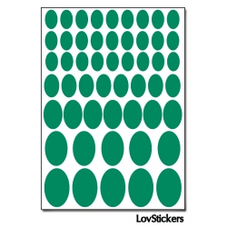 8 planches de 52 gommettes Ovales taille mixte, pour un total de 416 Autocollants.