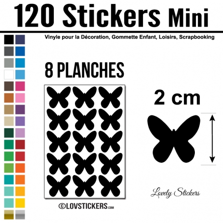120 Stickers Papillon 2cm - Décoration Gommette Loisirs - Vinyle Repositionnable