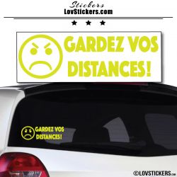 Sticker Gardez vos Distances! avec émotionne pas content. (19 x 6 cm)