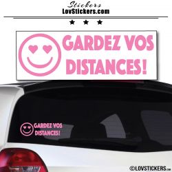 Sticker Gardez vos Distances! avec emoji yeux en coeur. (19 x 6 cm)