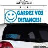 Sticker "GARDEZ VOS DISTANCES!" avec Emoji Sourire, pour voiture. (19,5 cm x 7 cm)
