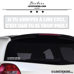 Sticker "Si tu arrives à lire ceci, c'est que tu es trop près !" pour voiture. (19,5 cm x 3,5 cm)