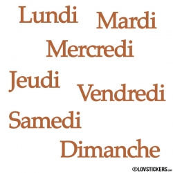 Stickers des jours de la semaine. Autocollant de décoration murale, mais aussi un outil pédagogique pour les enfants, idéal pour les chambres d'enfants, ou maternelle.