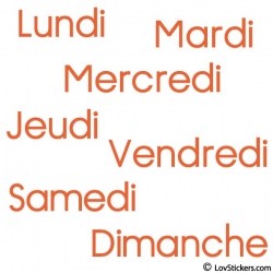Stickers des jours de la semaine. Autocollant de décoration murale, mais aussi un outil pédagogique pour les enfants, idéal pour les chambres d'enfants, ou maternelle.