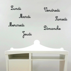 Stickers des jours de la semaine. Autocollant de décoration murale, mais aussi un outil pédagogique pour les enfants, idéal pour les chambres d'enfants, ou maternelle.