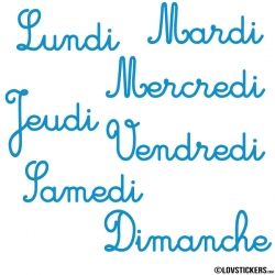 Stickers des jours de la semaine. Autocollant de décoration murale, mais aussi un outil pédagogique pour les enfants, idéal pour les chambres d'enfants, ou maternelle.