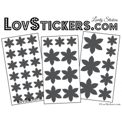 Kit composé de 47 Stickers Fleur de 3 à 6 cm, en Vinyle souple indéchirable et de qualité premium.