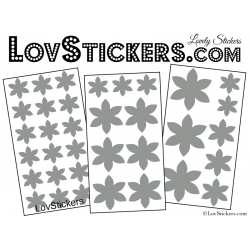 Kit composé de 47 Stickers Fleur de 3 à 6 cm, en Vinyle souple indéchirable et de qualité premium.