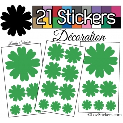 Kit composé de 21 Stickers Fleur de 3 à 10 cm, en Vinyle souple indéchirable et de qualité premium.