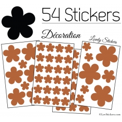 Kit composé de 54 Stickers Fleur de 2 à 5 cm, en Vinyle souple indéchirable et de qualité premium.