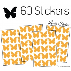 Kit composé de 60 Stickers Papillons de 3 cm,  en Vinyle souple indéchirable et de qualité premium.