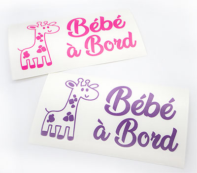 Stickers Bébé à Bord avec Girafe. Dimensions : 18,5 x 10 cm