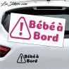 Stickers Bébé à Bord avec Panneau Danger. Dimensions : 19 x 8 cm