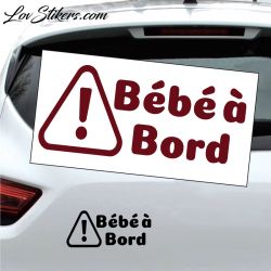 Stickers Bébé à Bord avec Panneau Danger. Dimensions : 19 x 8 cm
