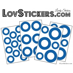 Kit composé de 29 Stickers Rond de 3 à 5 cm, en Vinyle souple indéchirable et de qualité premium.