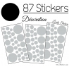 Kit composé de 87 Stickers Rond de 1,5 à 5 cm, en Vinyle souple indéchirable et de qualité premium.