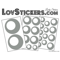 Kit composé de 24 Stickers Rond de 3 à 10 cm, en Vinyle souple indéchirable et de qualité premium.