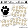 Une empreinte de chien mesure 2,6 cm de largeur. Les 40 autocollants sont repartis sur 4 planches.