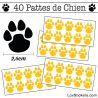 • Stickers Pattes de Chien lot de 40 en 26 mm jaune