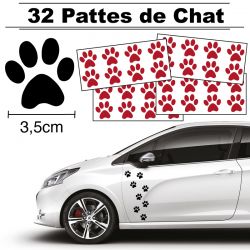 32 Stickers de pattes de chat 3,5 cm. Dessiné à partir de vraies empreintes de chat.  Autocollant vinyle pour extérieur.