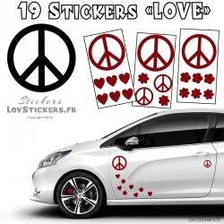 - 3 symboles Peace and Love de 10 cm et 2 de 5 cm.