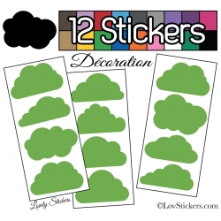 12 Stickers Nuage de 8 cm. Kit de 3 Planches. Autocollants de décoration série "Sticker Nuage".