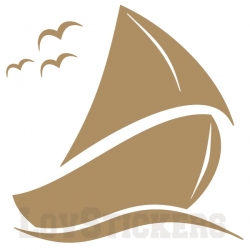 Stickers d'un Voilier avec mouettes. Autocollant de décoration murale.