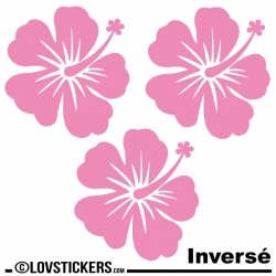 Lot de 3 Stickers Hibiscus 20 cm. Autocollant de décoration murale.