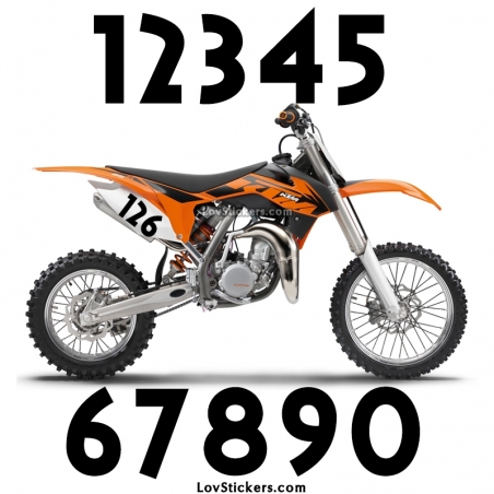 Kit de 2 chiffres (exemple 66). Stickers pour créer vos numéros racing spécial auto, moto, quad, bateau.